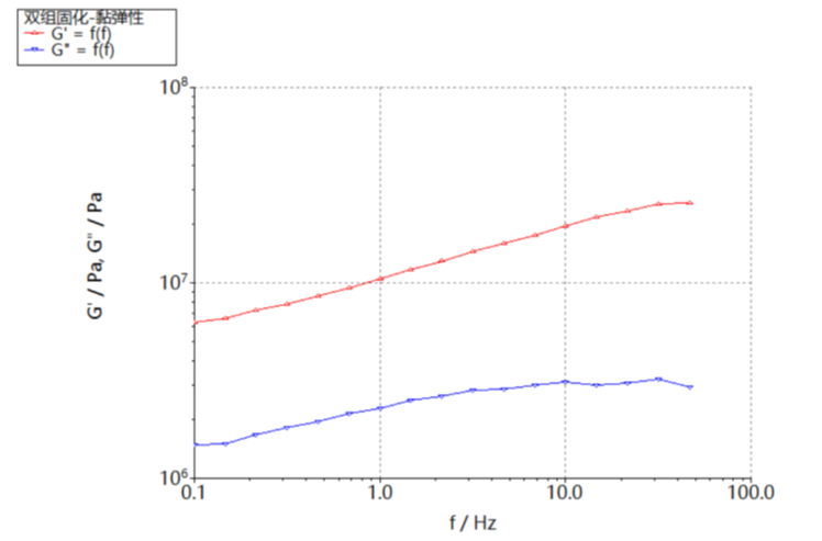 頻率掃描測試可以表征導(dǎo)熱膠在不同頻率下的彈性模量和黏性模量,為產(chǎn)品的質(zhì)控或配方研發(fā)提供方向。