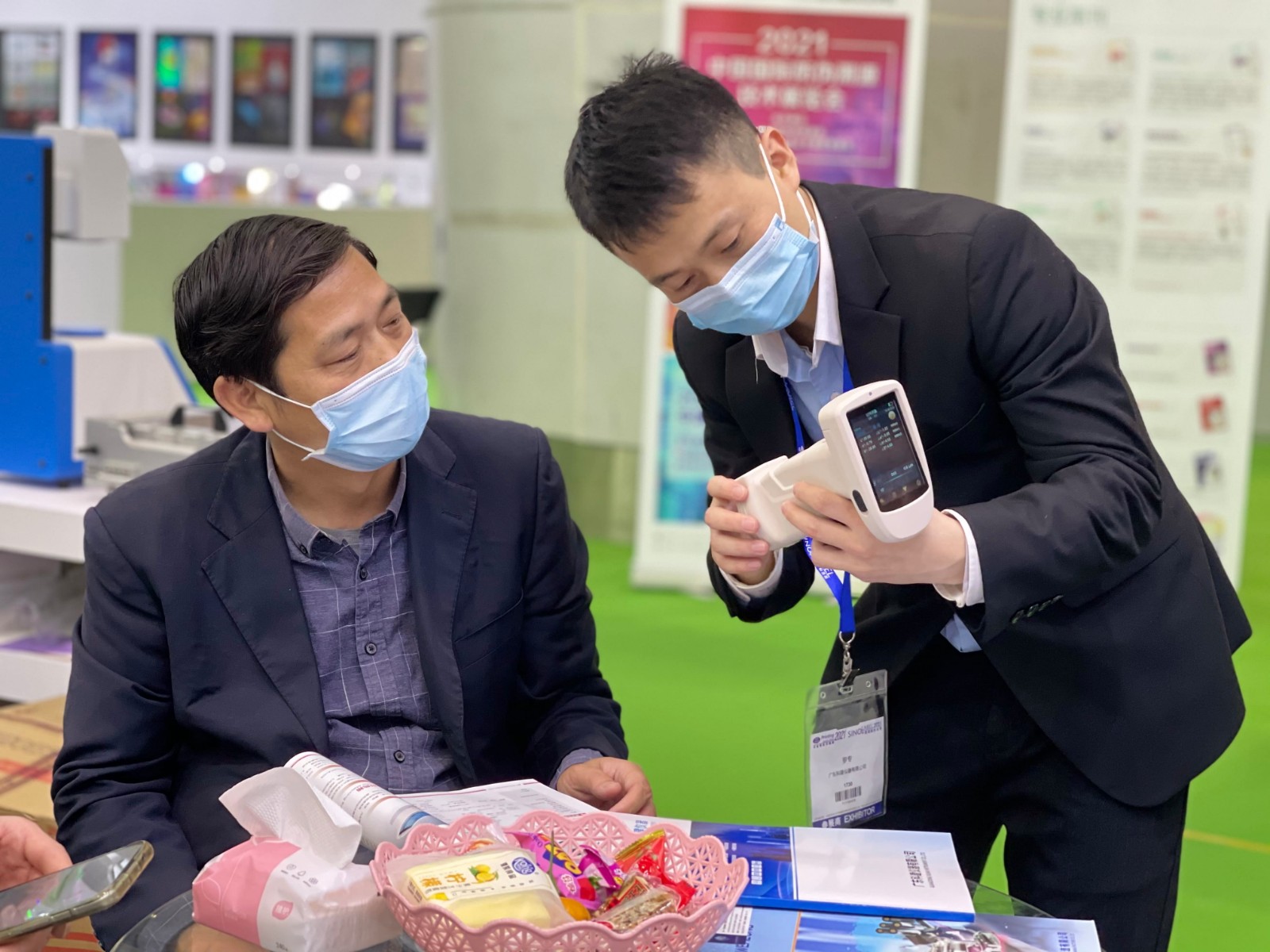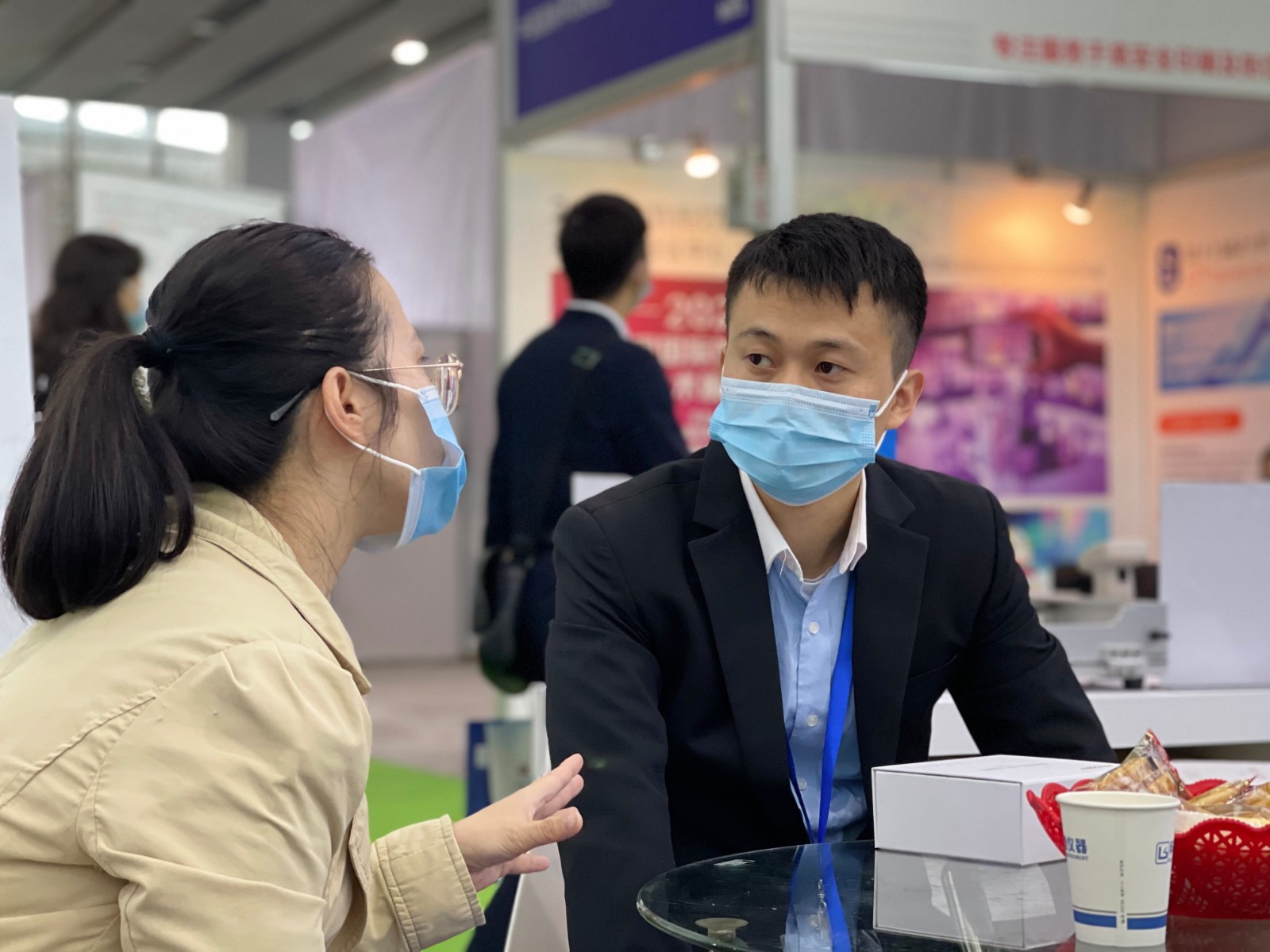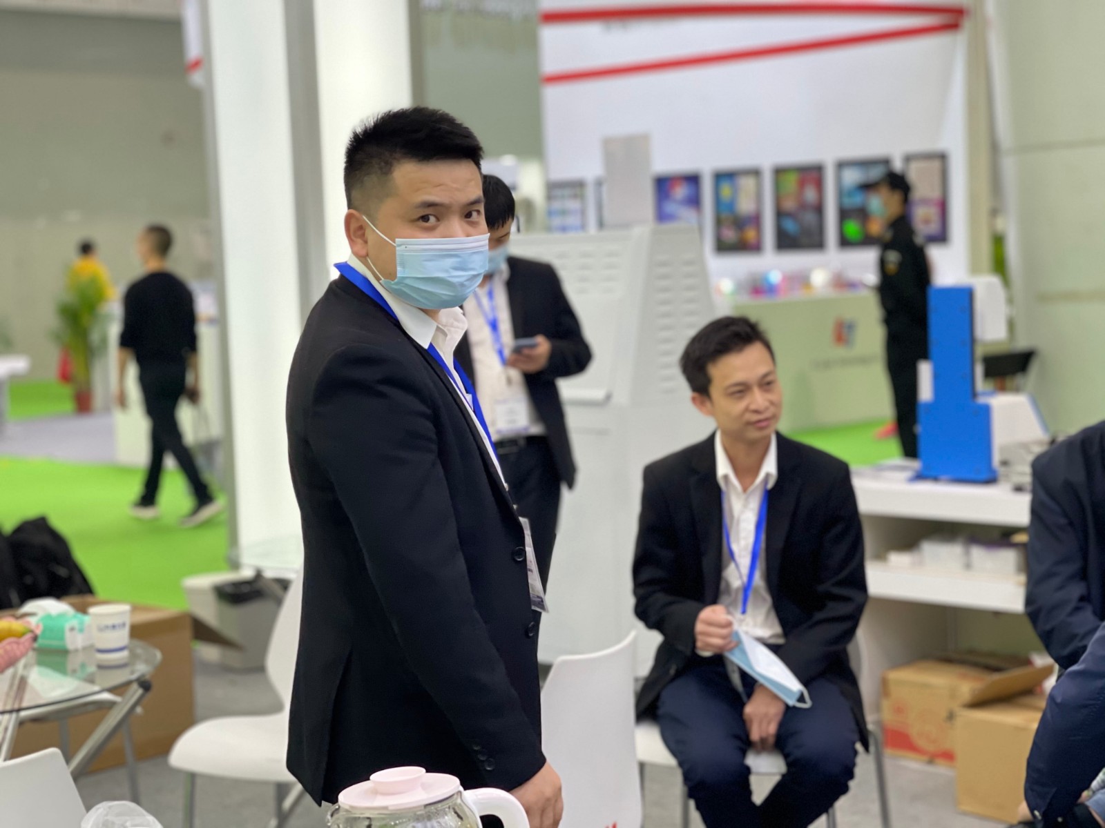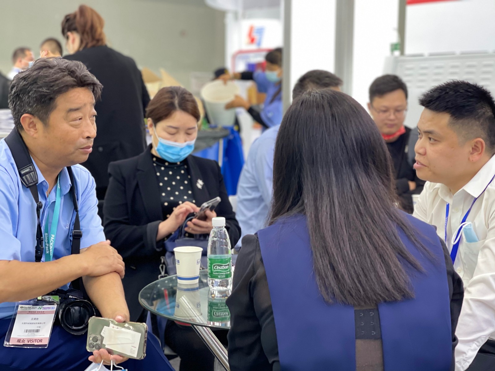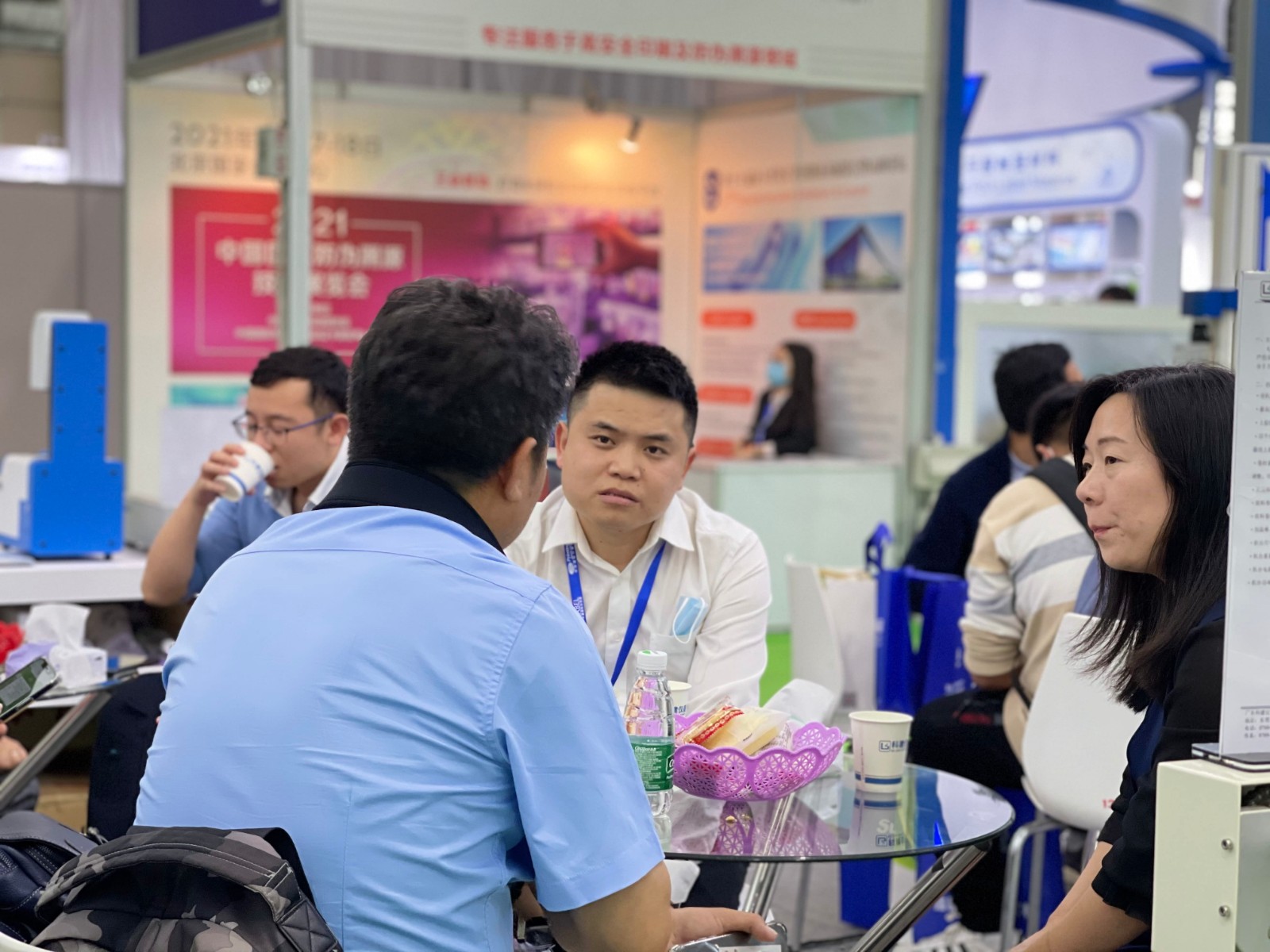 面對繁忙的展會,休息時間還不忘等待客戶的到來