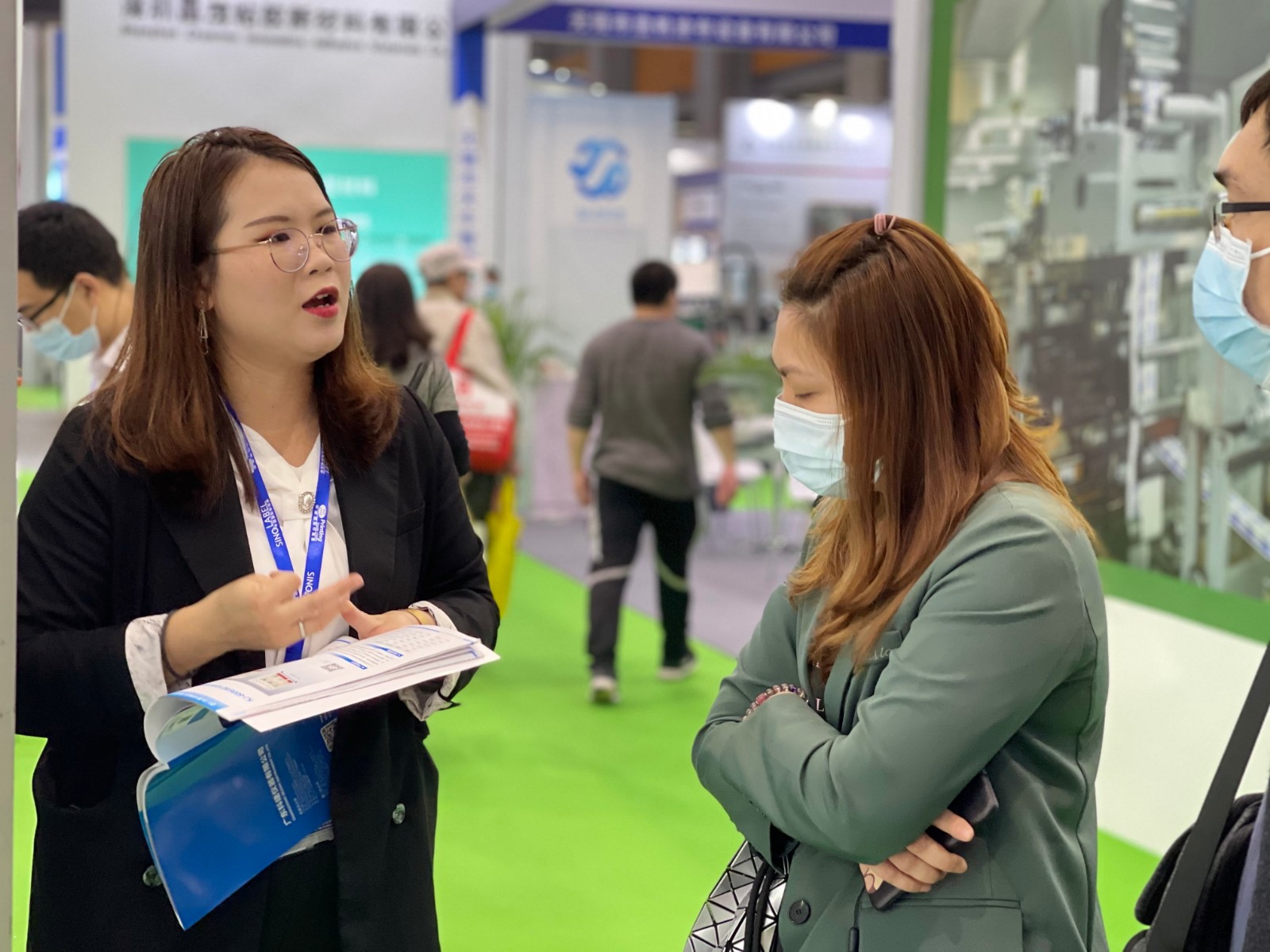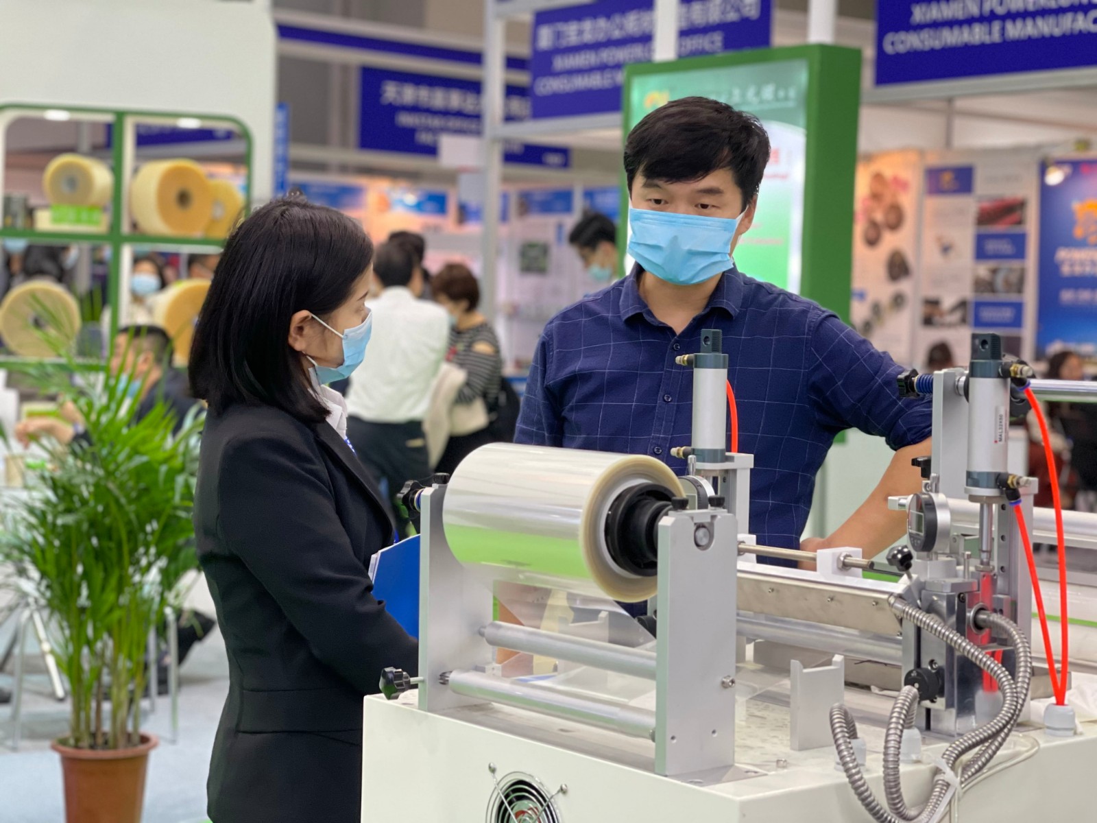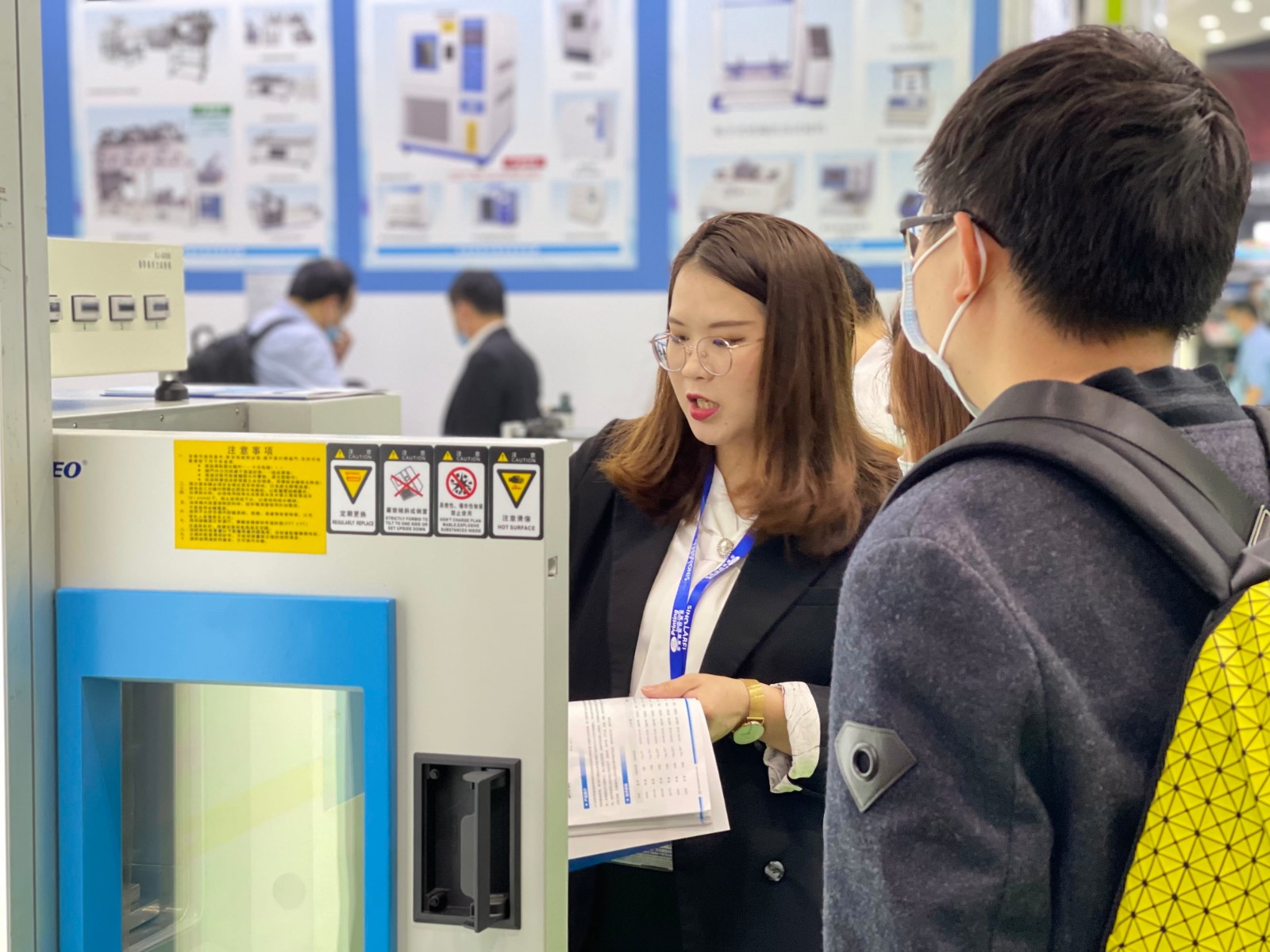 不落下任何參觀的客戶,講解著產(chǎn)品的使用