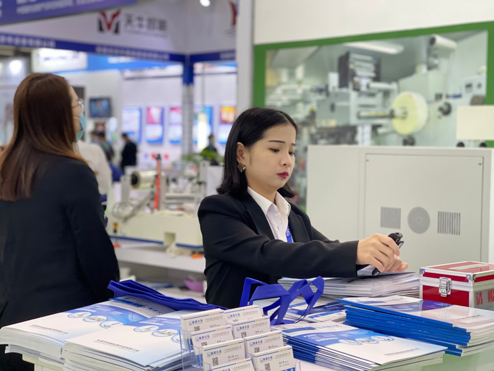 年輕貌美的覃小姐傾聽客戶公司生產(chǎn)的產(chǎn)品
