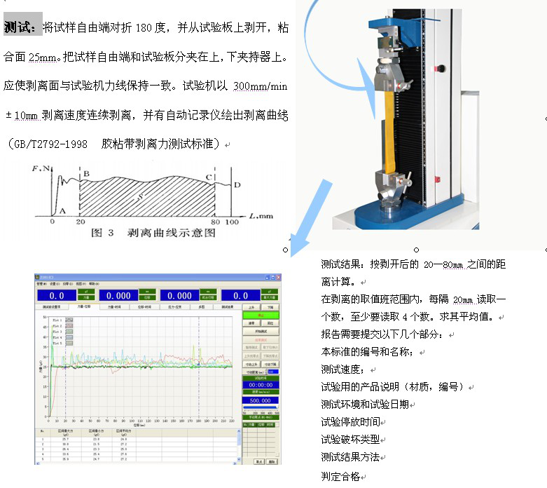 一、試驗(yàn)?zāi)康模簻y(cè)試不干膠材料、保護(hù)膜等膠粘材料的剝離強(qiáng)度及離型材料的離型力;