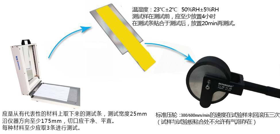 二、測(cè)試分類:180度剝離測(cè)試;90度剝離測(cè)試;離型力測(cè)試;